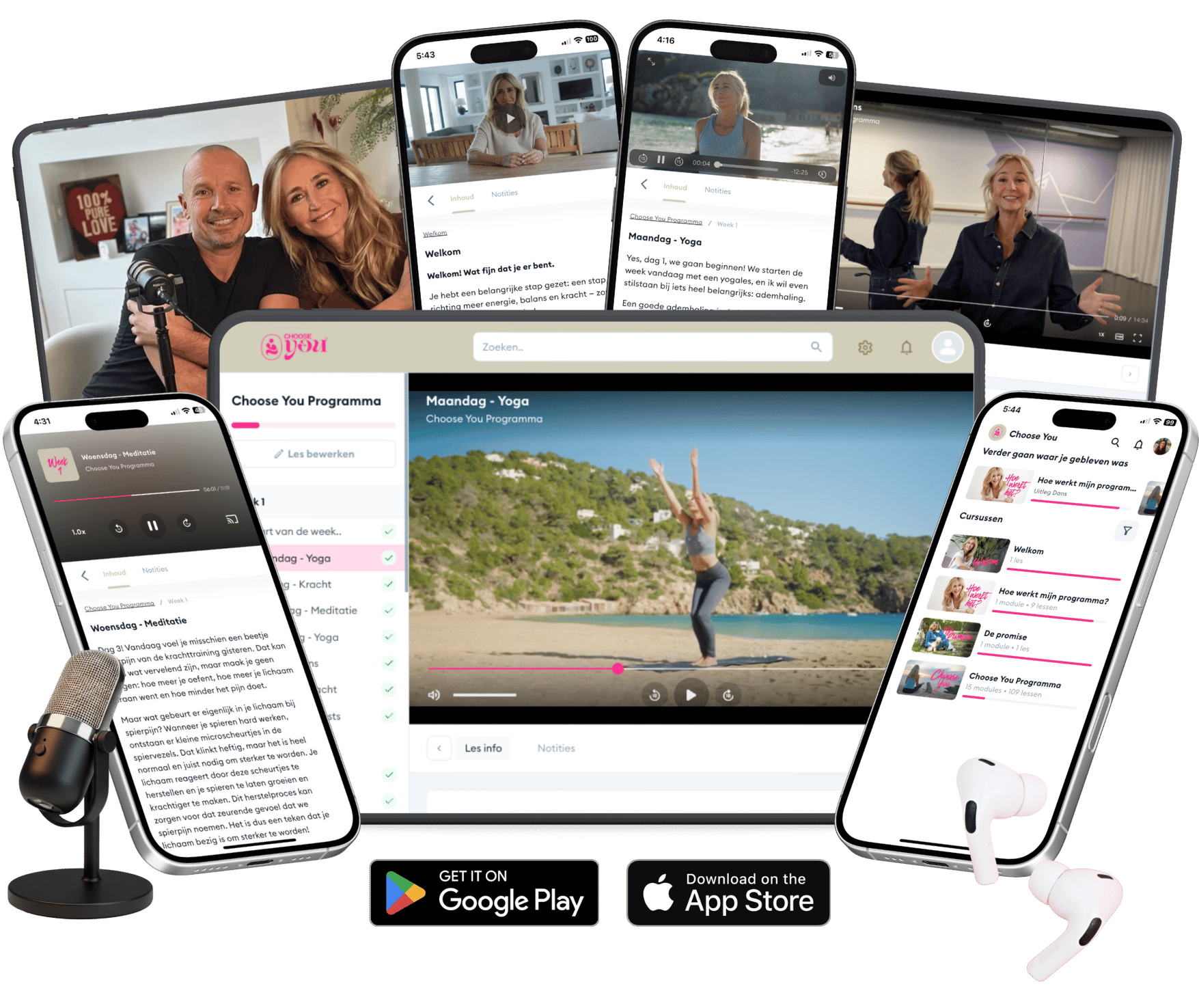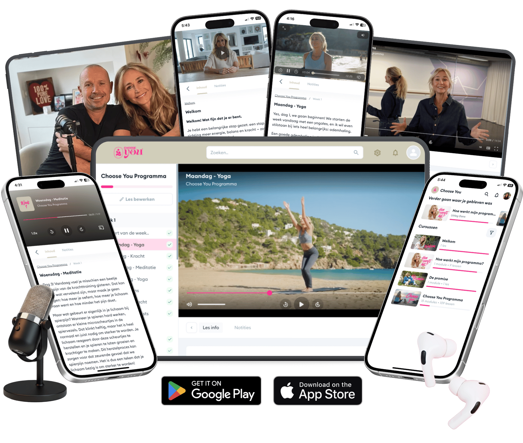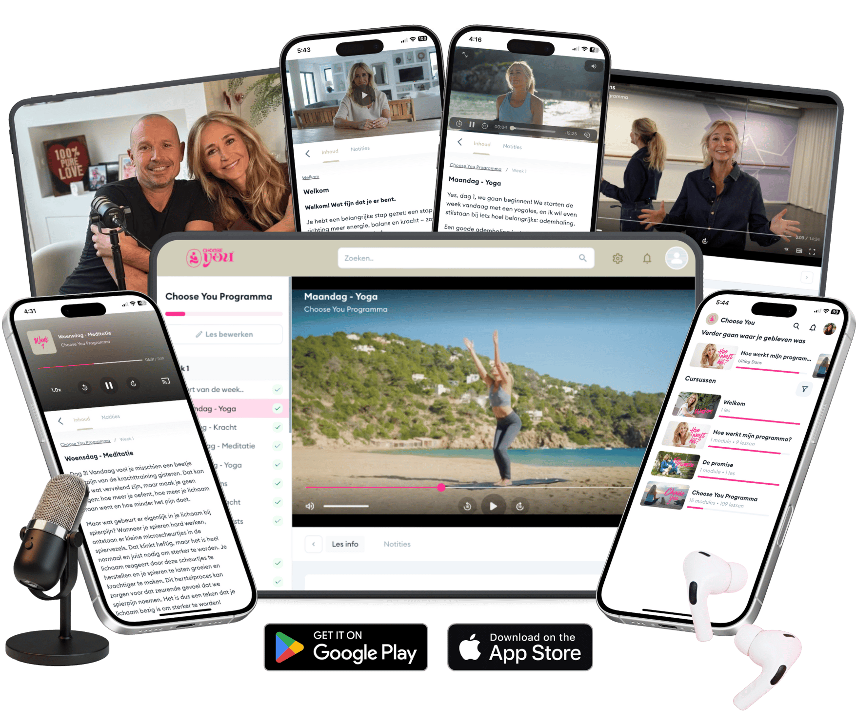Choose You duurt 12 weken, maar je krijgt 24/7 toegang tot het volledige programma. Alle video’s, podcasts, trainingen en meditaties blijven voor je beschikbaar, zodat je alles zo vaak kunt terugkijken en beluisteren als je wilt, op jouw moment, in jouw tempo.