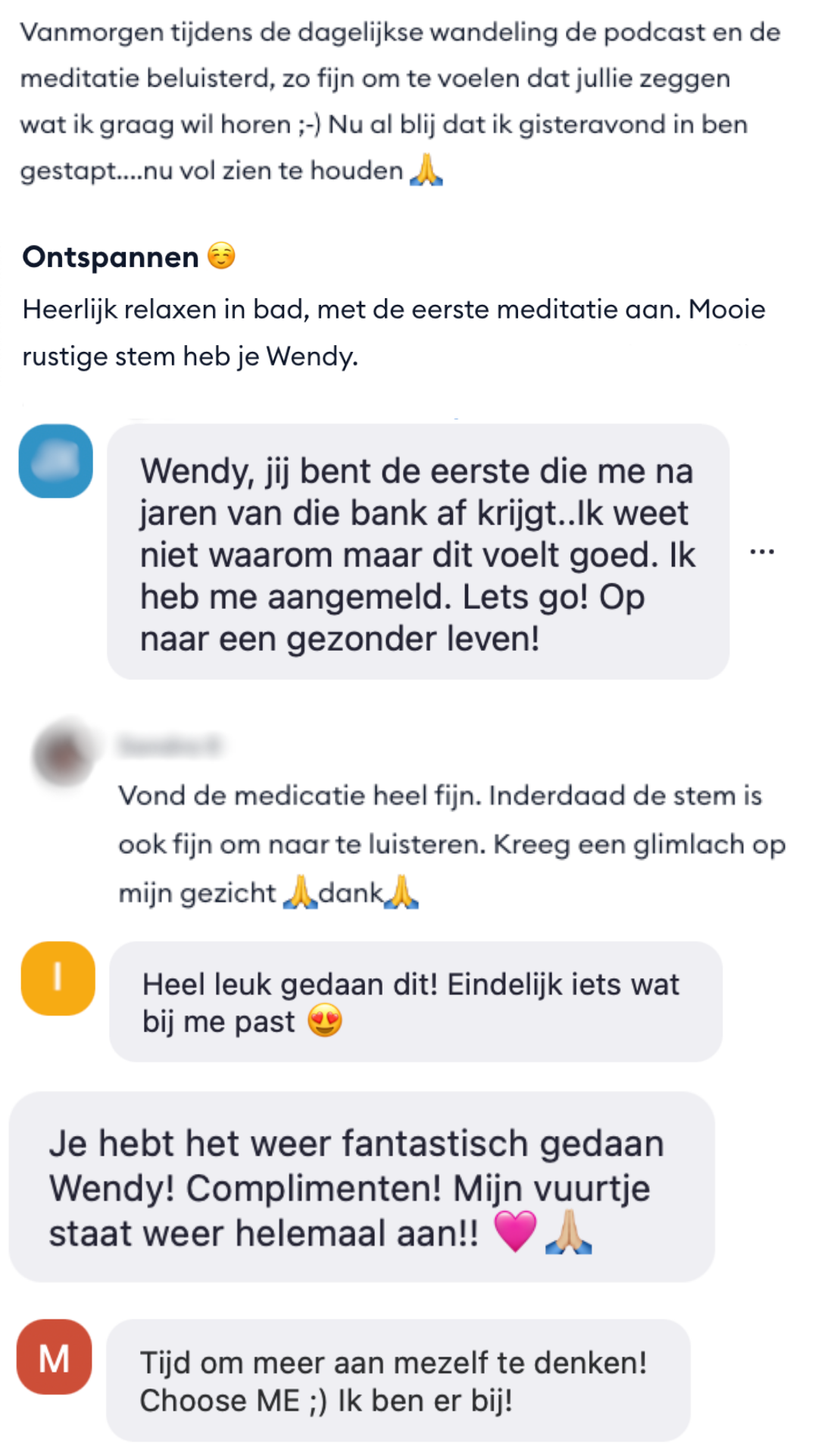 "Wendy is een prachtige en oprechte inspiratiebron, zo innemend en liefdevol voor iedereen. Door haar durfde ik een belangrijke stap in mijn leven te zetten waarvoor ik haar nog steeds dankbaar ben."