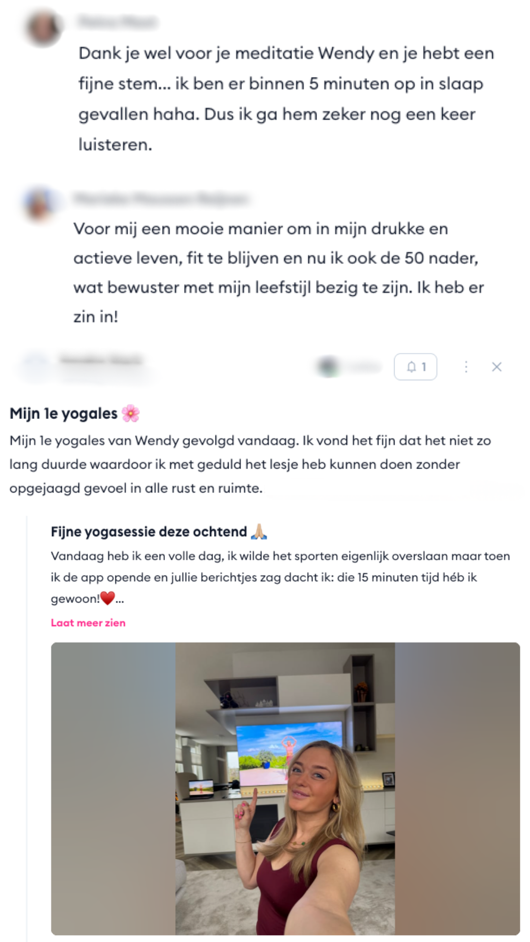 "Wendy creëert sfeer waarin je durft te voelen, te groeien, te lachen en stil te staan. Ze is een open, warme, energieke krachtbron. Haar Yoga-retraite was voor mij het begin van mijn bewustwording."